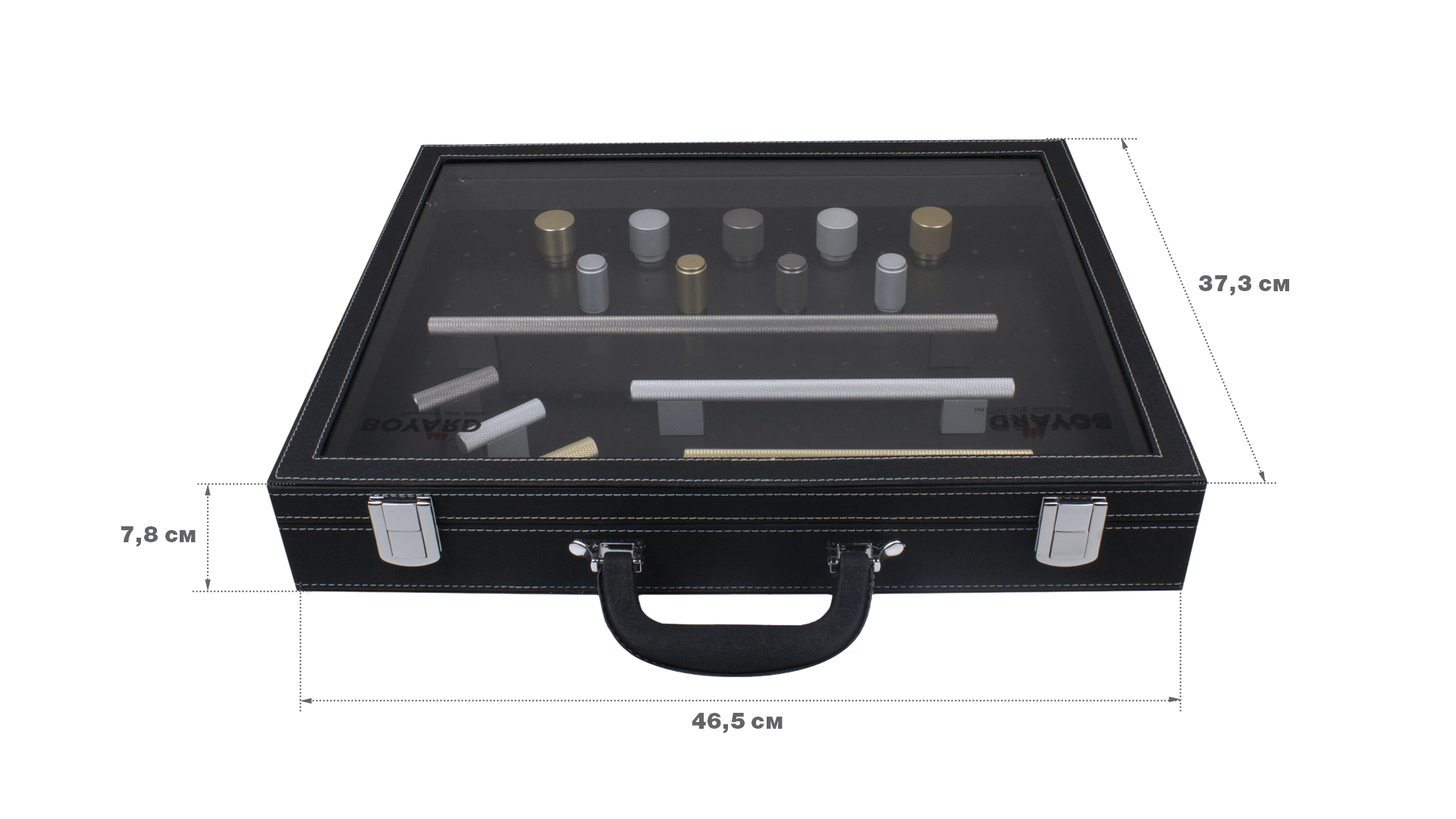 - для удобной транспортировки мебельной фурнитуры и эффектной презентации во время встреч с клиентами и заказчиками, где бы она ни происходила. Кейс оснащен ручкой и защелкивающимися замками.