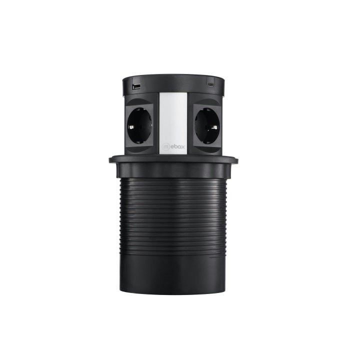 Блок розеток 107J\4 секции серебро+черный полуавтоматический D120мм 2 USB A +2 USB с беспроводной зарядкой