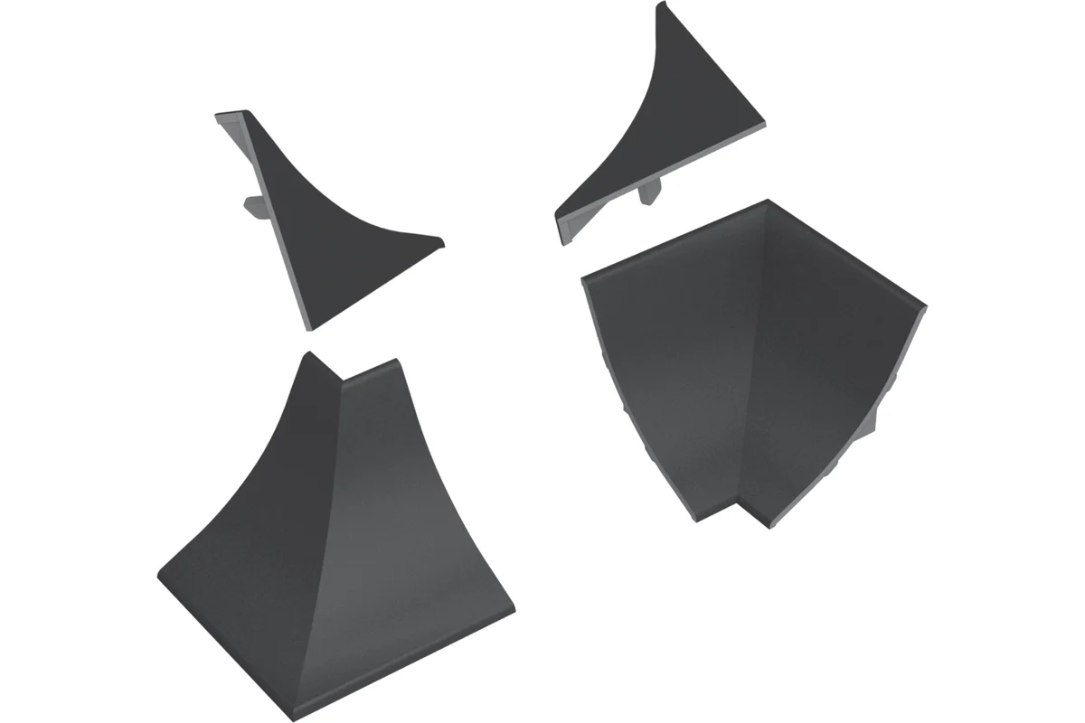 - 2 заглушки – левая и правая, которые обеспечивают плотное закрытие торцов плинтуса, скрывая открытые части и придавая завершённый вид.