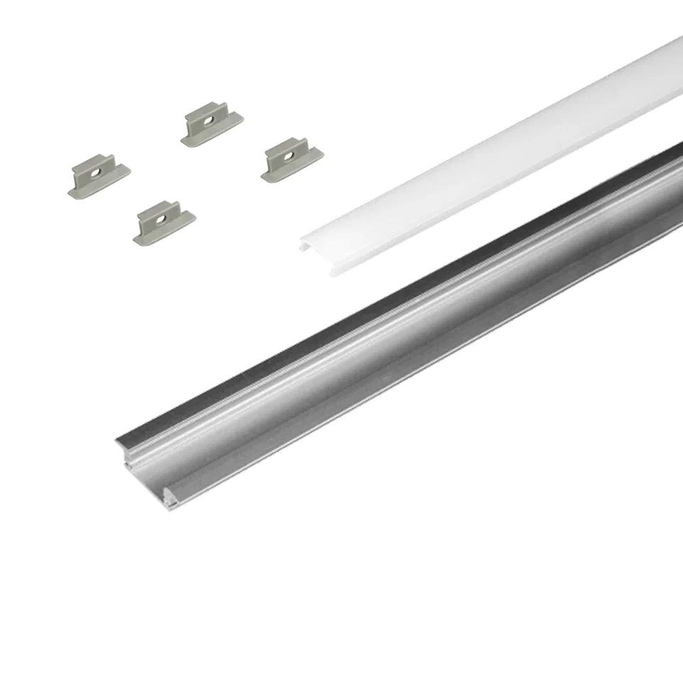 2507W-01 2м алюм профиль, бесцвет анод , диффузор молочный , 4 заглушки с отверстием серые