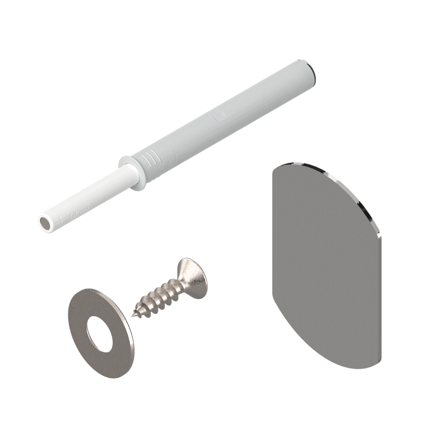 Комплект 956A1004 обеспечивает удобное открывание дверей лёгким нажатием. Длинная конструкция подходит для высоких или тяжёлых фасадов, обеспечивая стабильную работу механизма. Цвет «белый» делает набор универсальным для светлой мебели, оставаясь незаметным внутри корпуса.