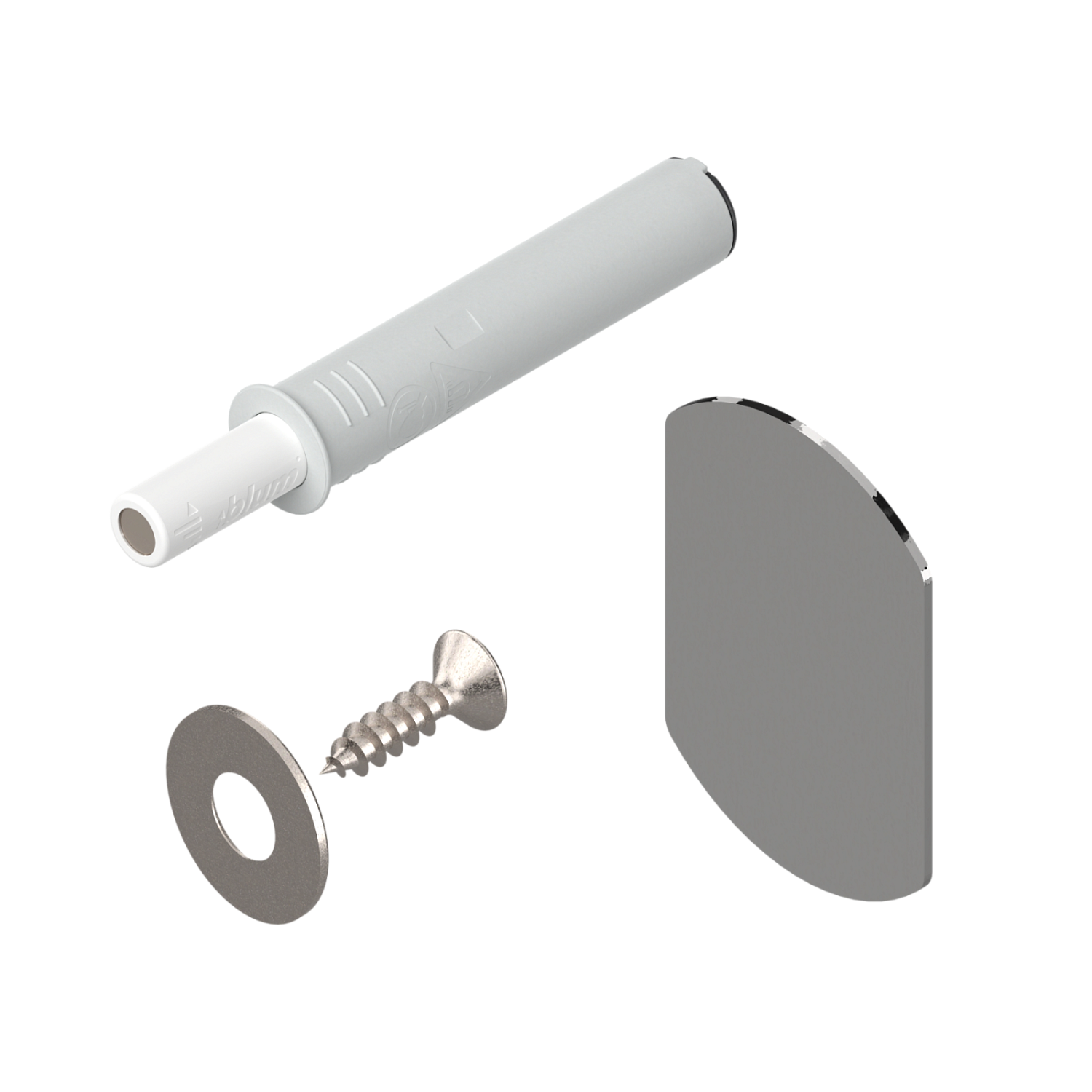 Комплект 956.1004 обеспечивает удобное открывание дверей лёгким нажатием. Короткая версия используется для стандартных фасадов и даёт стабильную, надёжную работу механизма. Белый цвет делает комплект незаметным внутри светлой мебели.