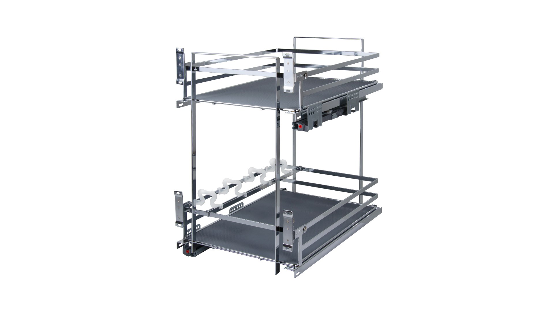 Корзина шириной 300 мм и 400 мм, имеет 2 уровня хранения со сплошным дном и антискользящей поверхностью.