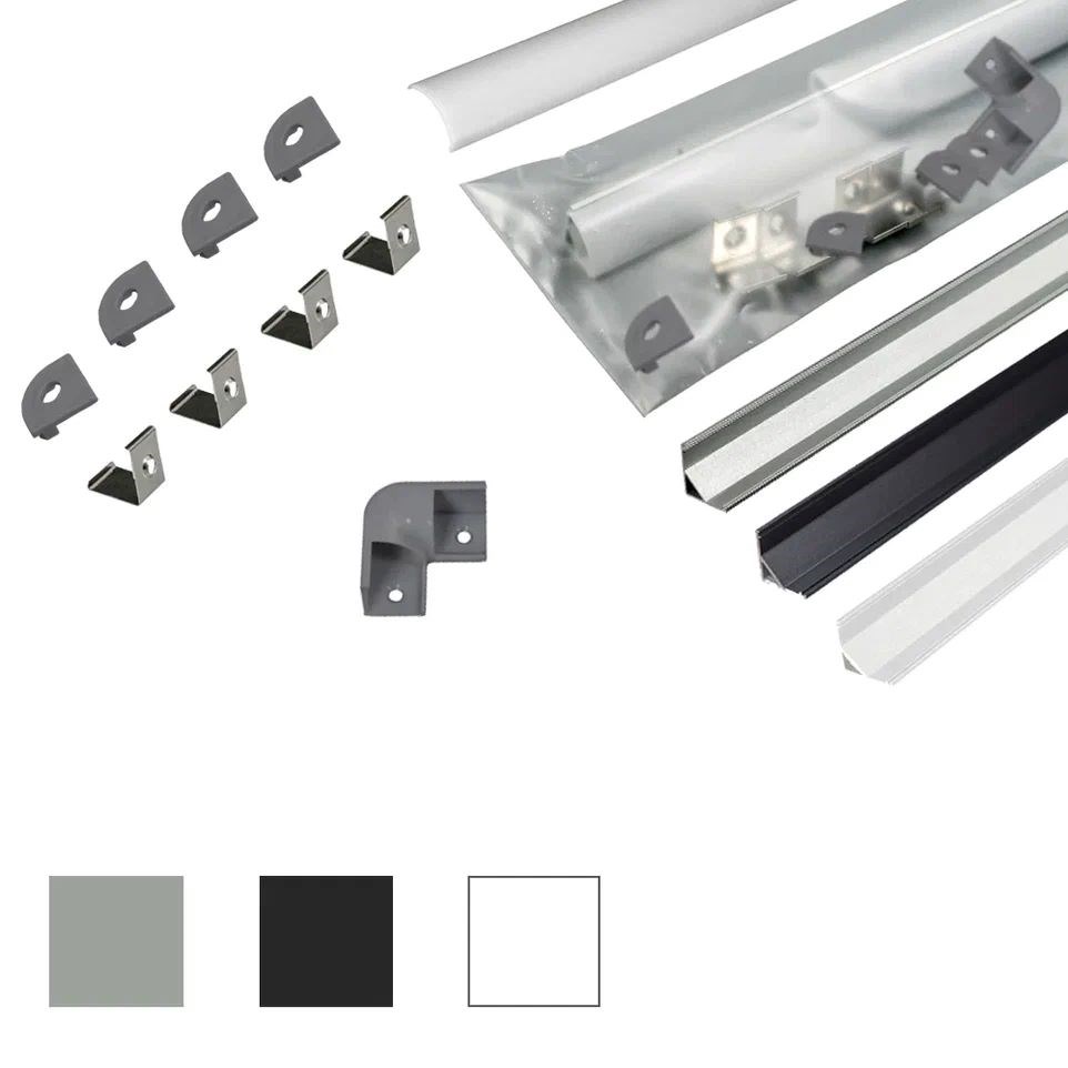 КСС 1616W-01 алюм профиль угловой ,бесцветный анод, диффузор молочный, 4 заглушки, 4 клипсы