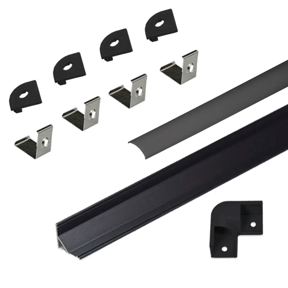 КСС 1616W-02 алюм профиль угловой ,черный, диффузор черный, 4 заглушки, 4 клипсы