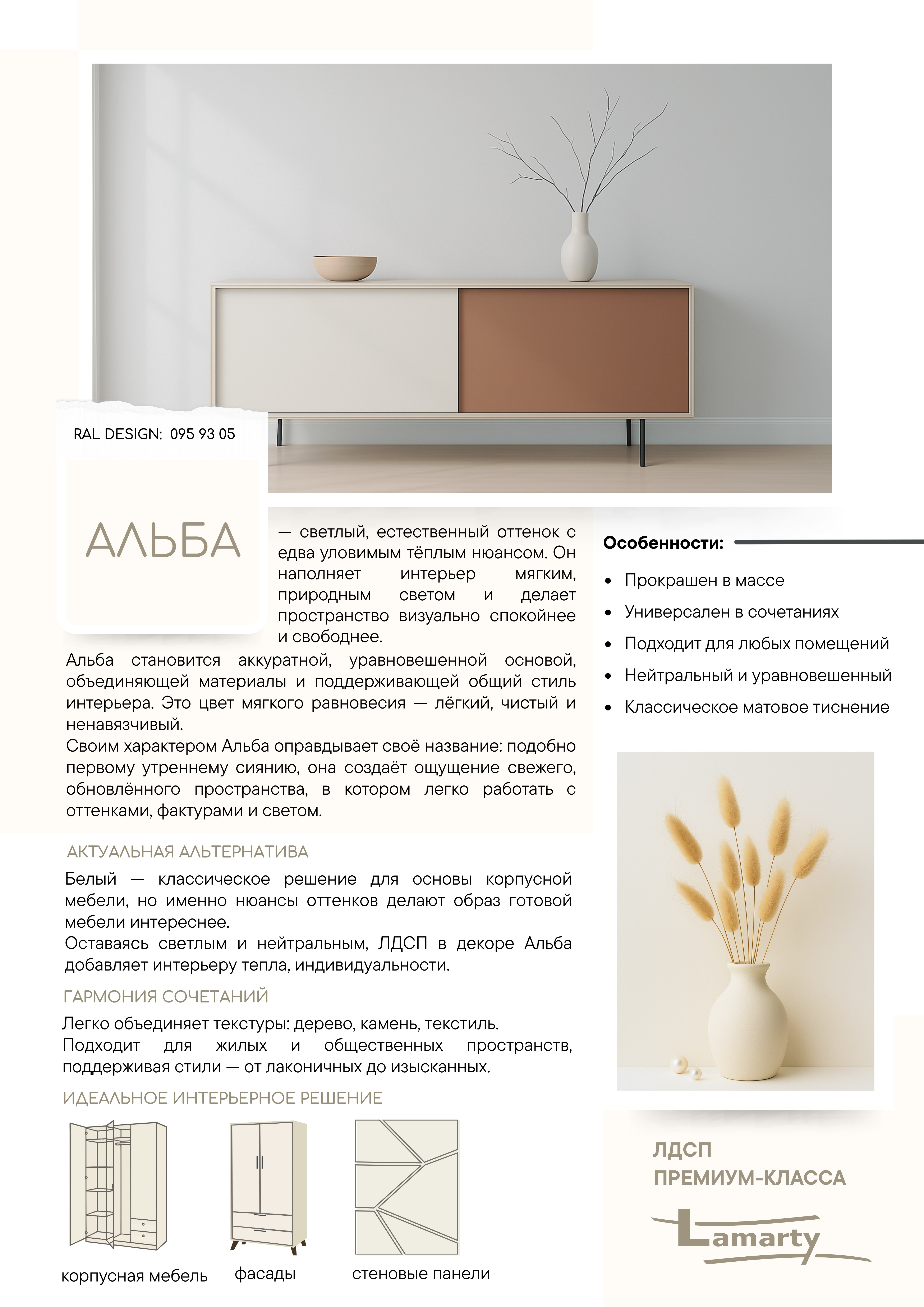ЛДСП АЛЬБА 16 мм K - матовое 2750*1830 Ламарти NEW