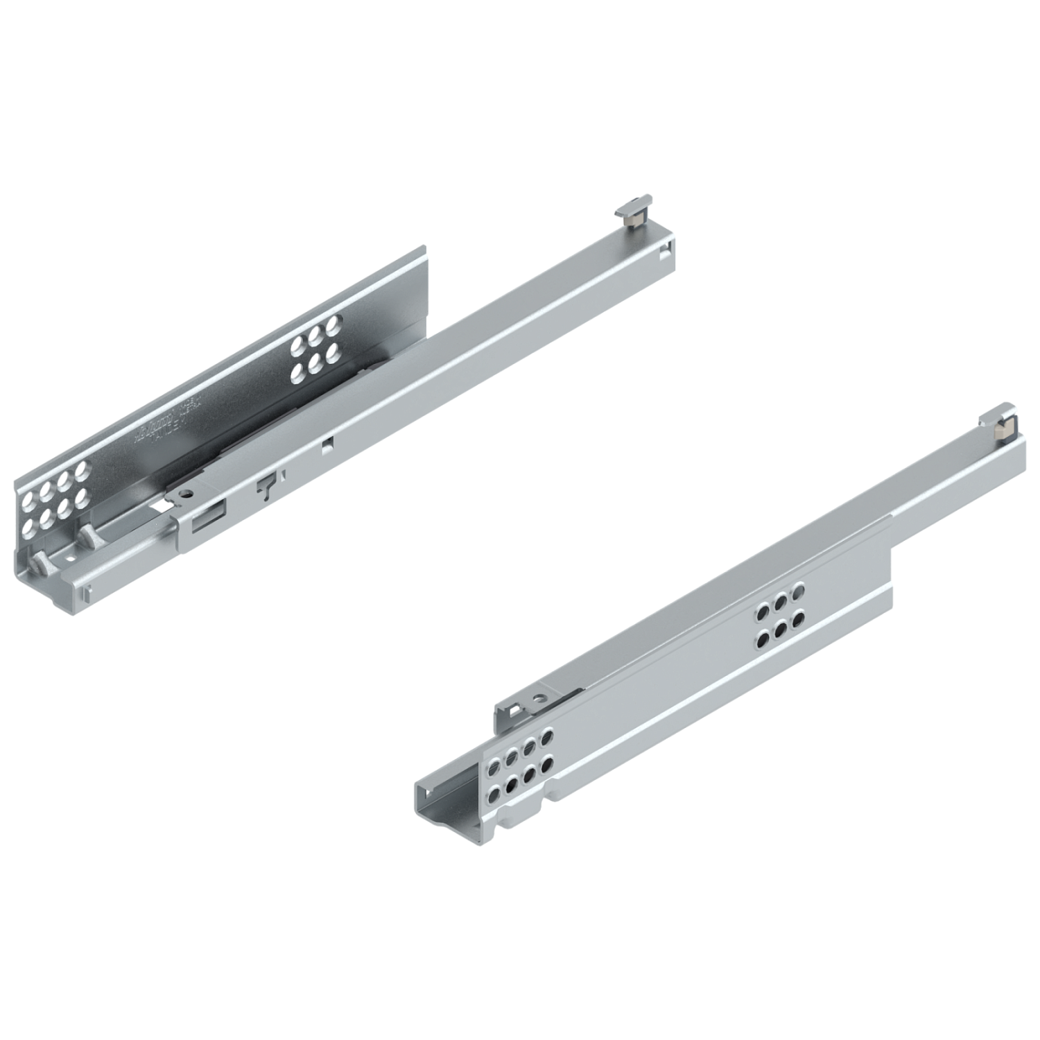 Направляющие TANDEM с частичным выдвижением подходят для небольших ящиков, где полный выкат не требуется. Система обеспечивает плавный и тихий ход благодаря скрытой конструкции и точной геометрии направляющих. BLUMOTION гарантирует мягкое закрывание независимо от нагрузки и скорости. Направляющие устанавливаются под замки, что делает монтаж быстрым и удобным.