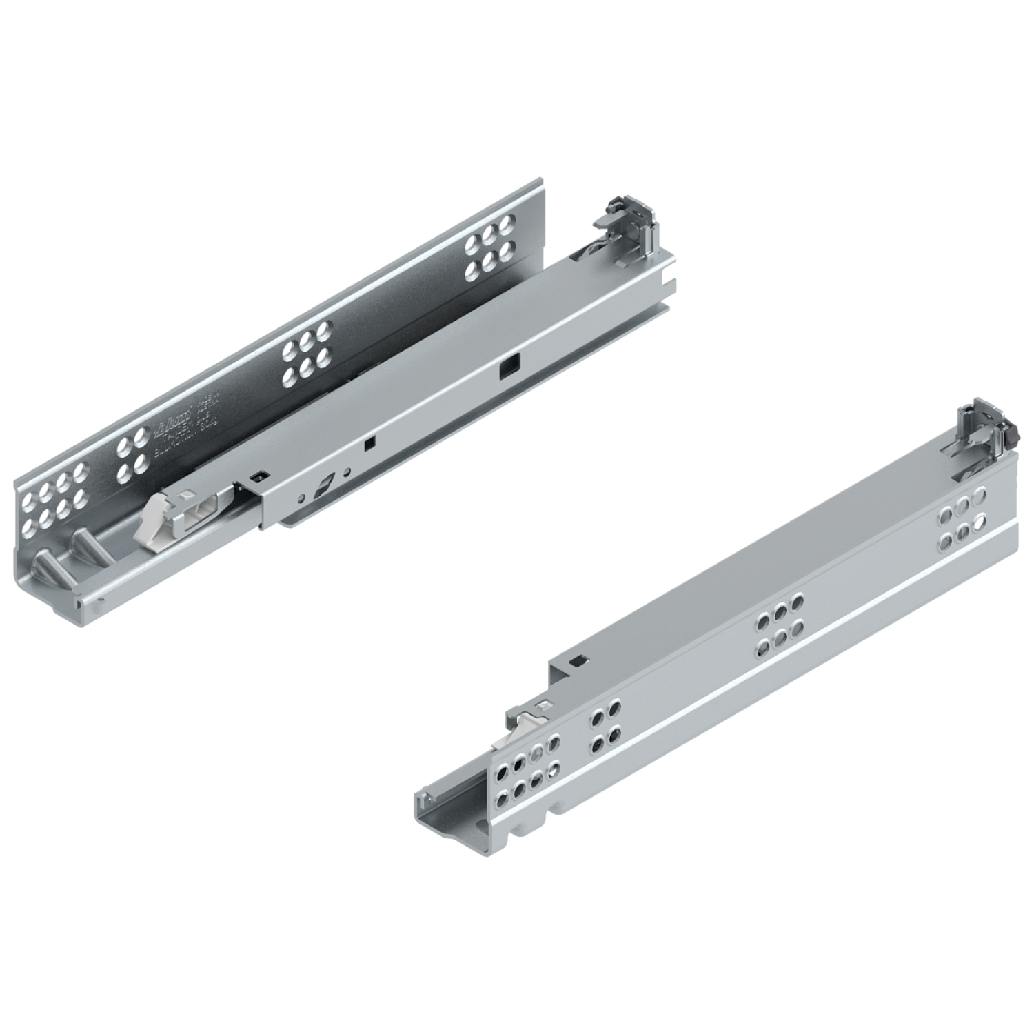 Система TANDEM plus BLUMOTION обеспечивает плавный, тихий и устойчивый ход ящика за счёт скрытой конструкции и высокоточной геометрии шариковых дорожек. Полное выдвижение позволяет использовать весь внутренний объём ящика. BLUMOTION гарантирует мягкое закрывание независимо от веса содержимого. Монтаж выполняется под замки, что удобно при сборке и обслуживании мебели.