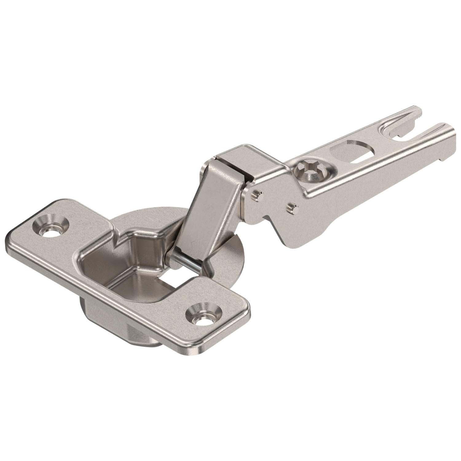 Модель 91M2650 используется на полунакладных фасадах, когда дверца частично перекрывает боковину корпуса. Петля оснащена пружинным механизмом, обеспечивающим уверенное закрытие, и креплением чашки на шурупы. Серия MODUL — практичное и доступное решение для серийной и бюджетной мебели, сочетающее простоту установки и прочность конструкции.
