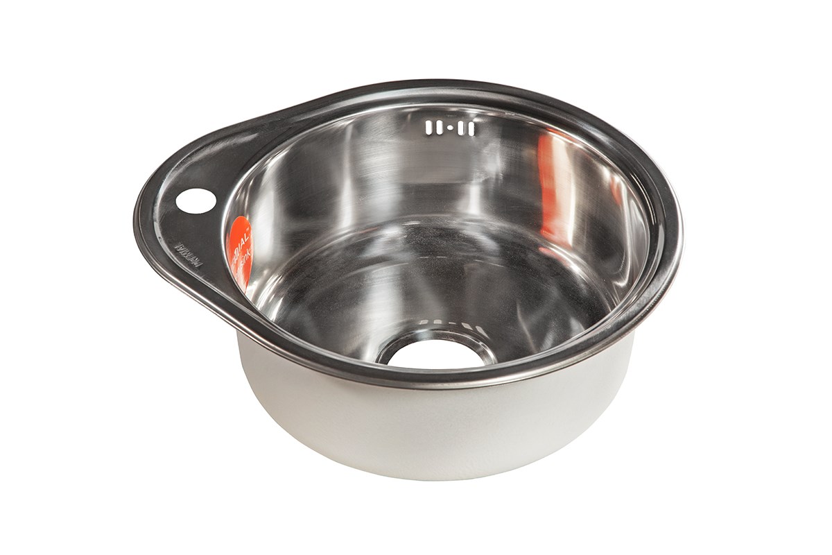 Модель PL4843 — каплевидная врезная мойка с чашей диаметром 37 см. Толщина стали 0,8. Два вида поверхности — матовая и полированная. Глубина чаши 18см. Мойка со сливным отверстием 3 ½″ укомплектована выпуск-сливной «корзинкой» с решеткой 114 мм из нержавеющей стали с затвором и резьбой 11/2″. В комплект фурнитуры входит также белый бутылочный сифон из АБС-сополимера, гофра с переливом, уплотнитель и монтажные клипсы для крепления мойки к столешнице. Минимальная база для установки — 41х46 см.