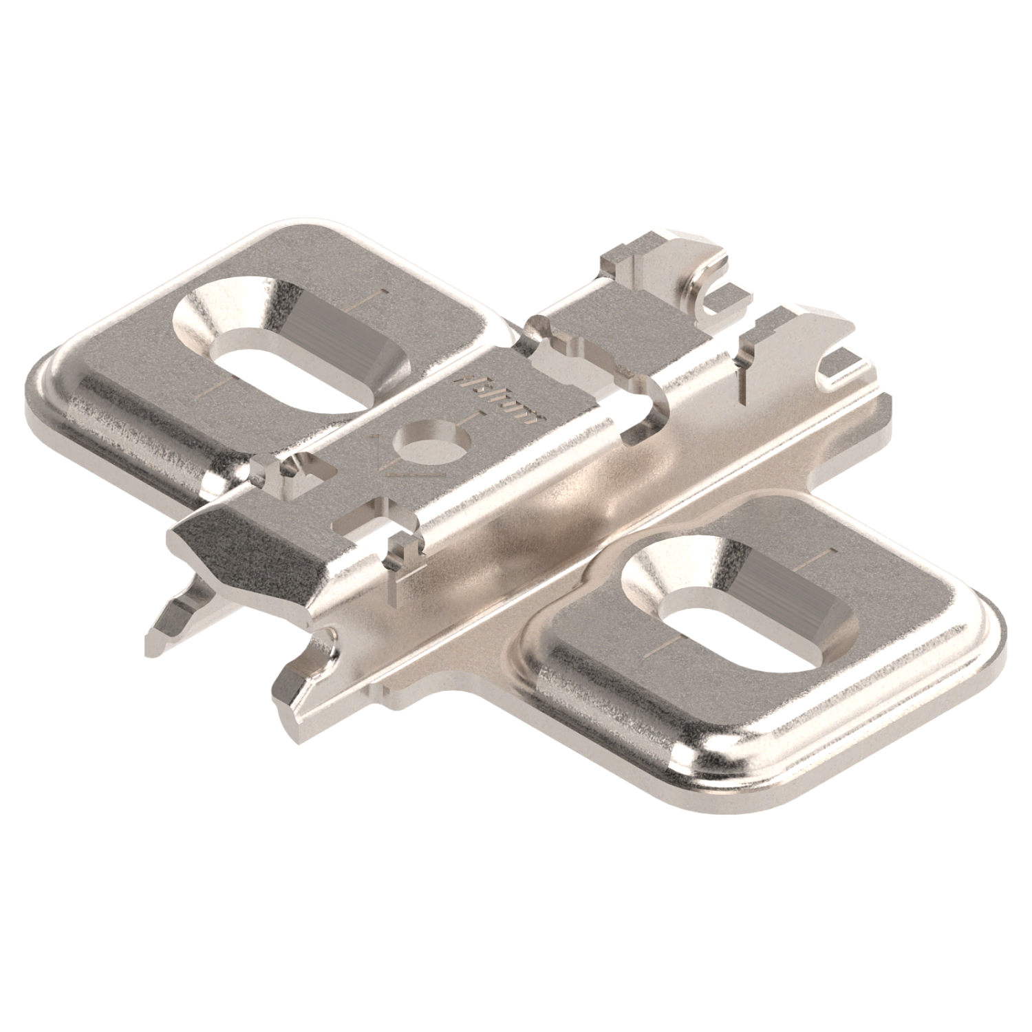 Модель обеспечивает надёжное основание для петель Blum серий CLIP и CLIP top. Классическая крестовая форма гарантирует совместимость с широким спектром петель. Планка фиксируется непосредственно к корпусу мебели с помощью саморезов, что удобно при отсутствии евроотверстий или необходимости быстрой установки.