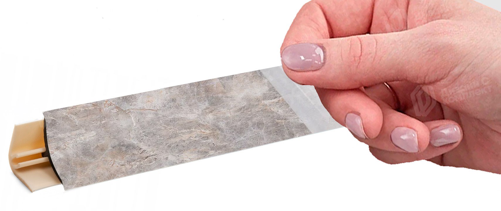 LB151 обеспечивает плавный и эстетичный переход между столешницей и стеной, сохраняя единый цветовой ритм благодаря уплотнителю, идеально совпадающему с декором плинтуса.