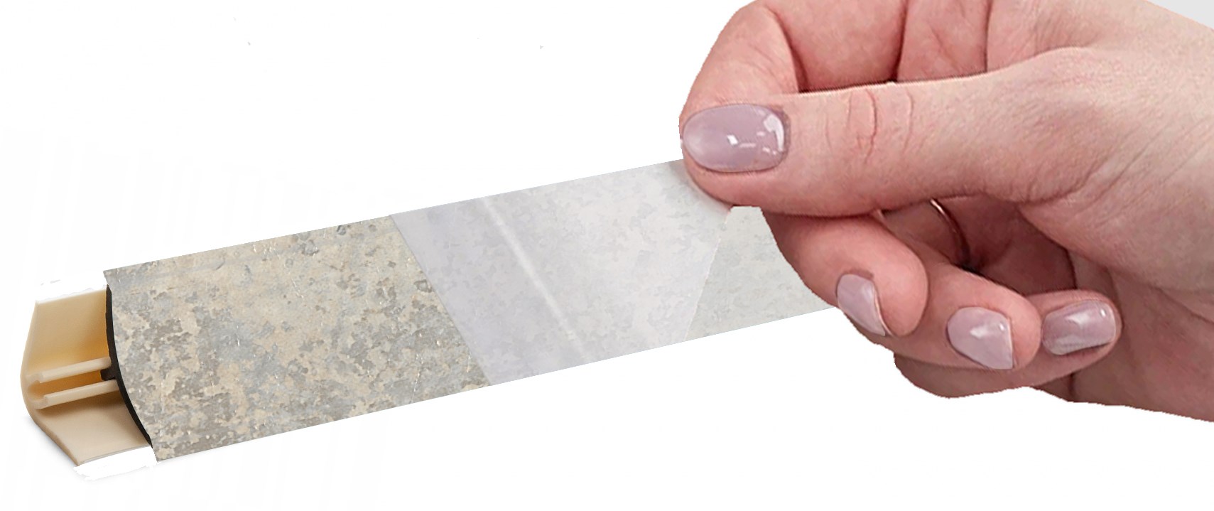 LB151 обеспечивает плавный и эстетичный переход между столешницей и стеной, сохраняя единый цветовой ритм благодаря уплотнителю, идеально совпадающему с декором плинтуса.