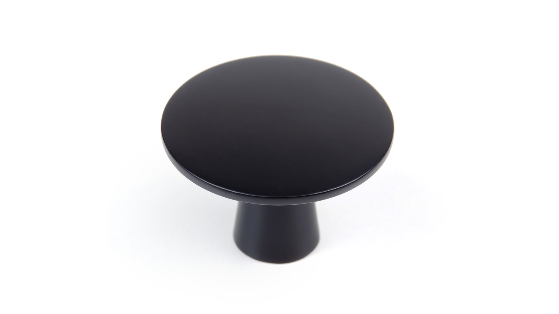 Ручка-кнопка с круглой шляпкой диаметром 40 мм и расширяющимся книзу основанием обладает эргономичной формой.