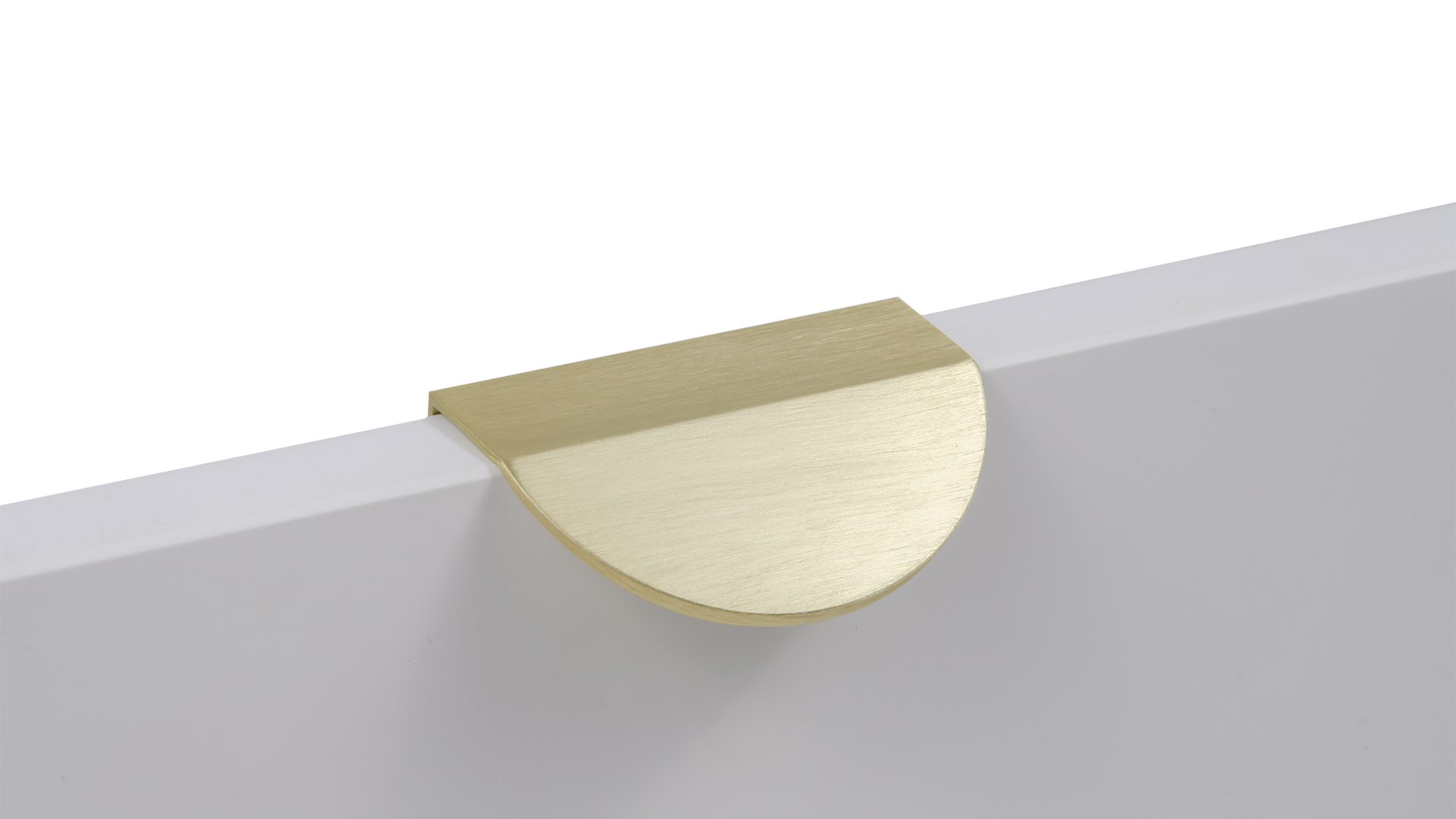 VIVA RT012 — торцевая ручка из алюминия, с геометричным выступом в форме полукруга. Для удобства захвата на ручках увеличен отступ язычка, а на его внутренней стороне предусмотрено рифление. Устанавливается наложением, подходит для фасадов толщиной до 18 мм.