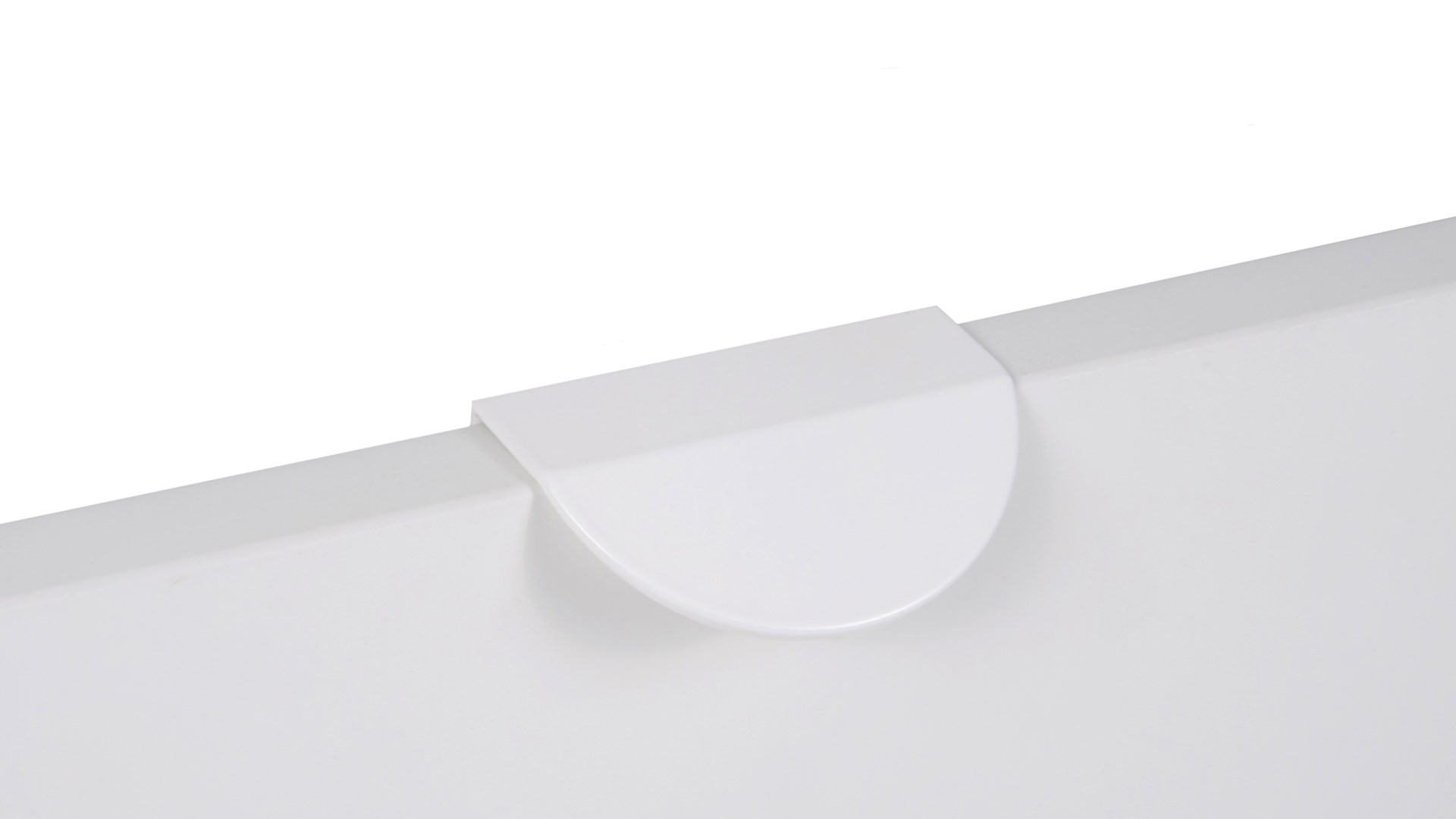 VIVA RT012 — торцевая ручка из алюминия, с геометричным выступом в форме полукруга. Для удобства захвата на ручках увеличен отступ язычка, а на его внутренней стороне предусмотрено рифление. Устанавливается наложением, подходит для фасадов толщиной до 18 мм.