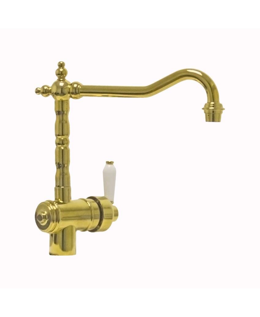 Смеситель для кухни Seaman Barcelone SSL-5077 Sun выполнен в классическом стиле с покрытием золото. Смеситель прекрасно подойдёт для кухонь в ретро стиле. Высокий излив позволит комфортно мыть посуду и наполнять ёмкости большого объёма.
