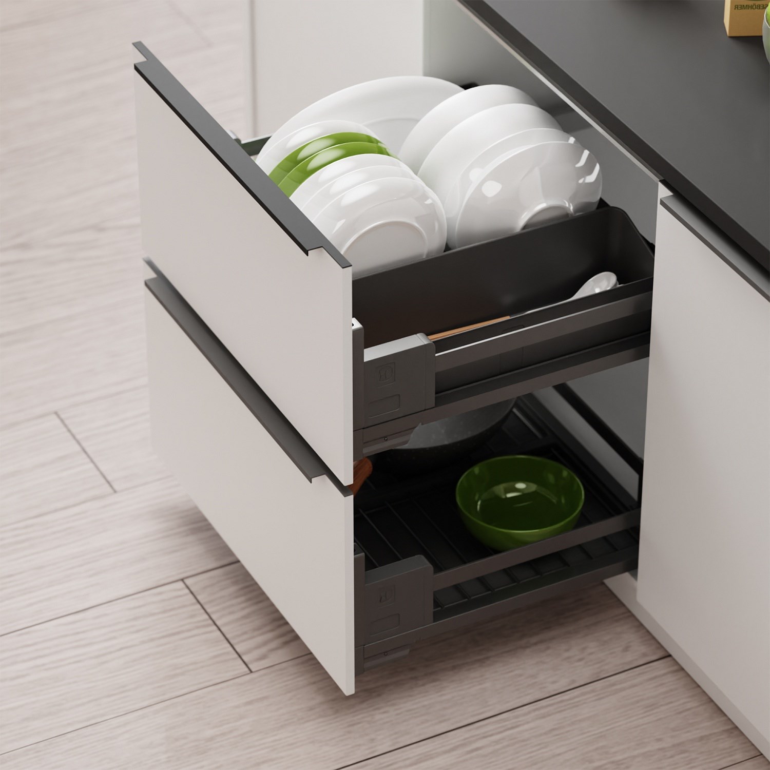 Состав товара: Рама; крепление к фасаду; 2 направляющих; модуль для посуды большой; модуль для посуды малый; модуль с решеткой большой